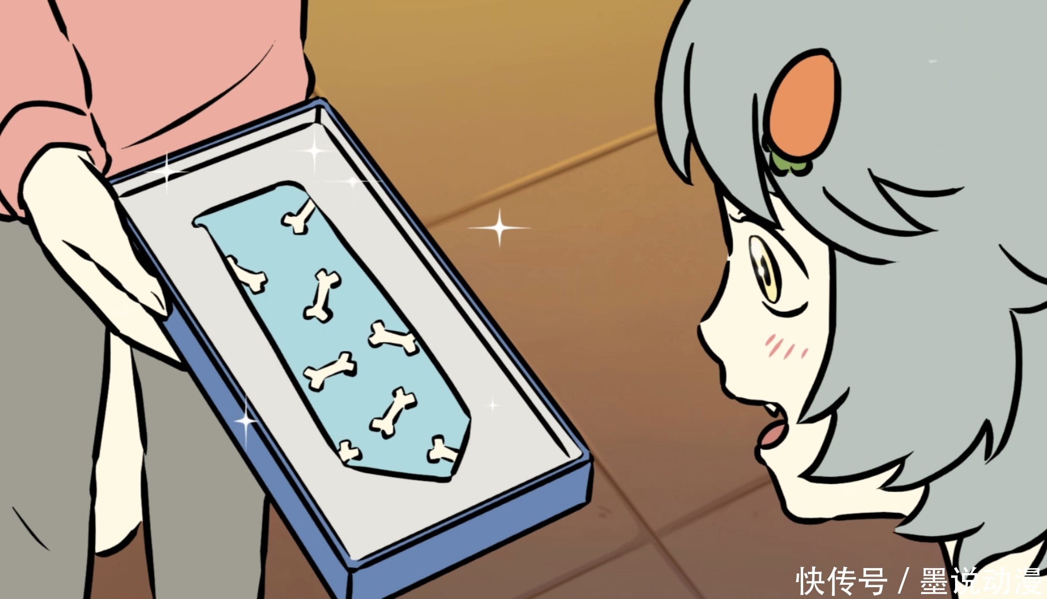 虽说九月。小玉和十一月皆认为哮天的礼物没什么用,但知谈他用了好多心想。是以他们也准备了礼物给哮天,由九月躬行拿给哮天。那么是什么礼物呢?其实即是一条领带,还印着骨头图案。关于哮天来说,这即是最棒的礼物。伙伴们皆记起他,那就很慷慨。