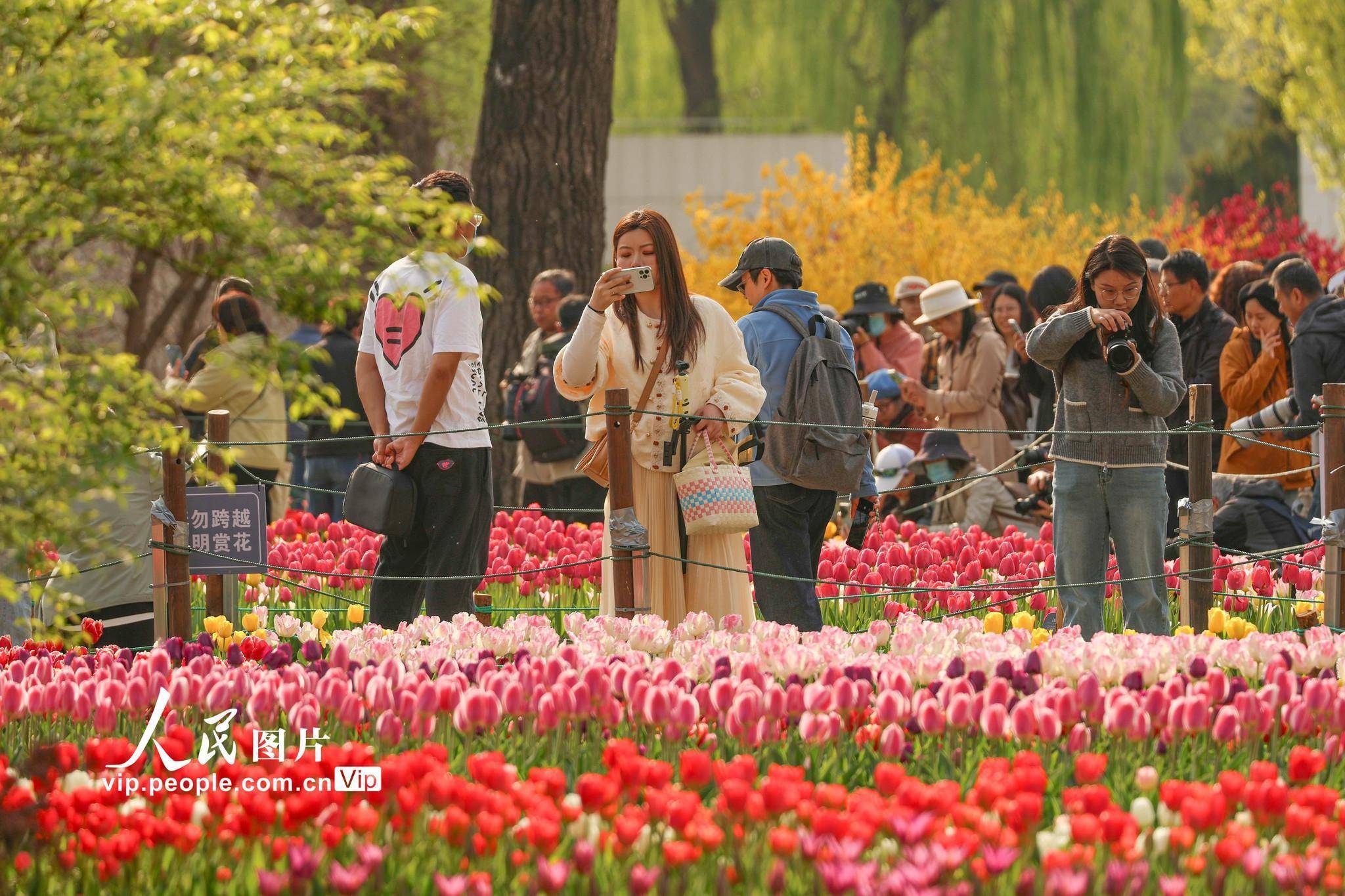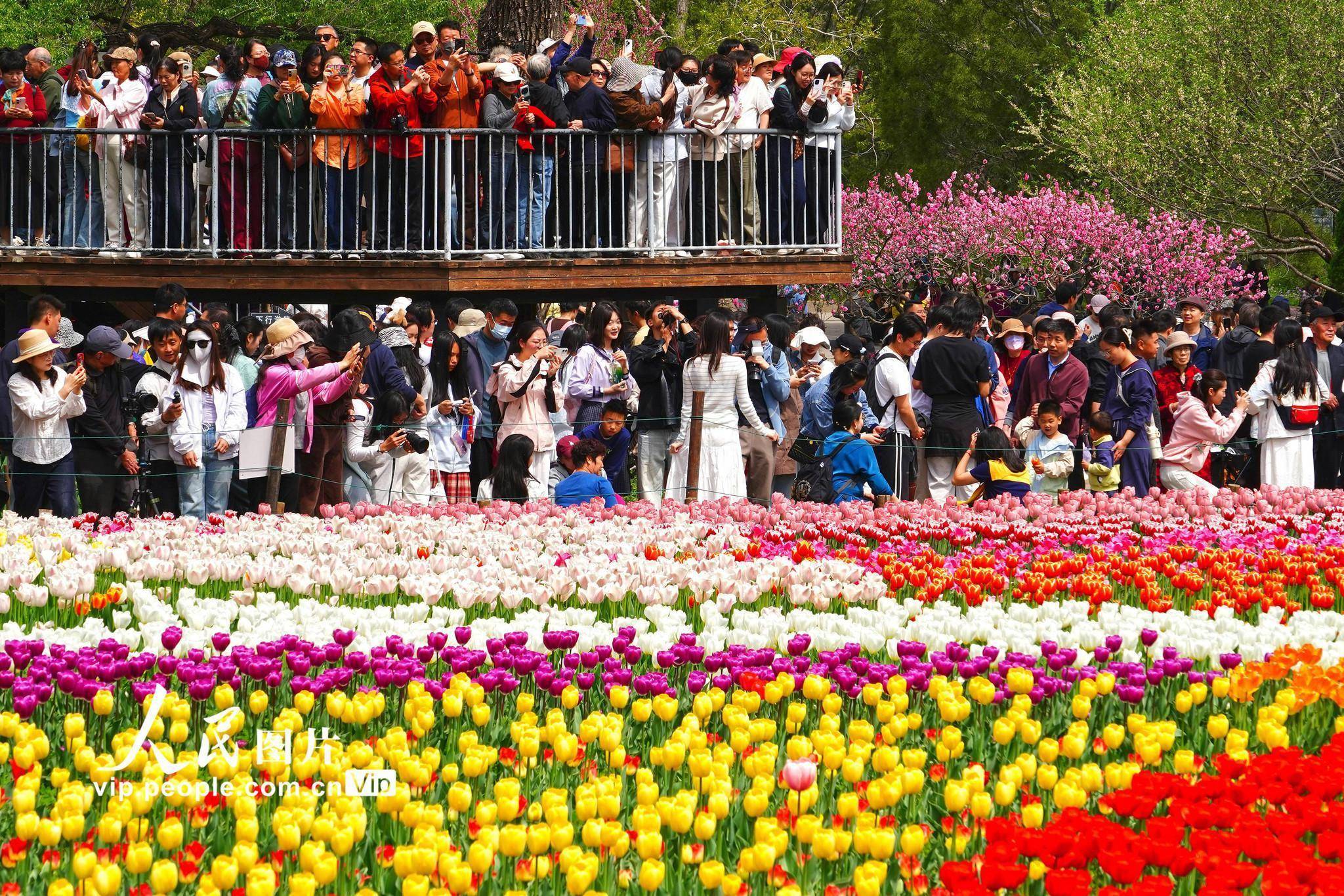 2026年4月12日,北京,国度植物园内的郁金香绽开,园内游东说念主如织。刘宪国摄(东说念主民图片网)