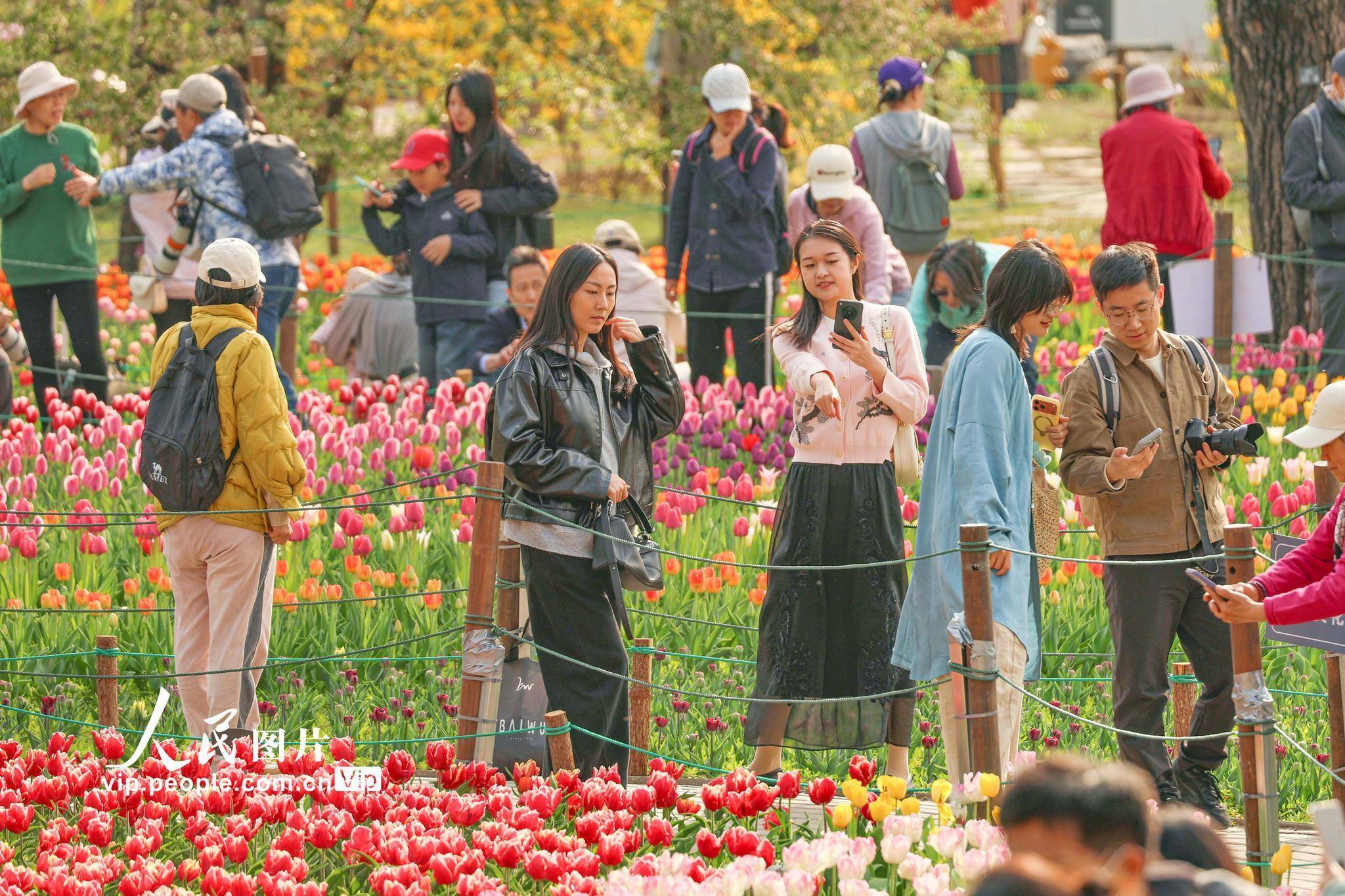 2026年4月12日,北京,国度植物园内的郁金香绽开,园内游东说念主如织。宋家儒摄(东说念主民图片网)