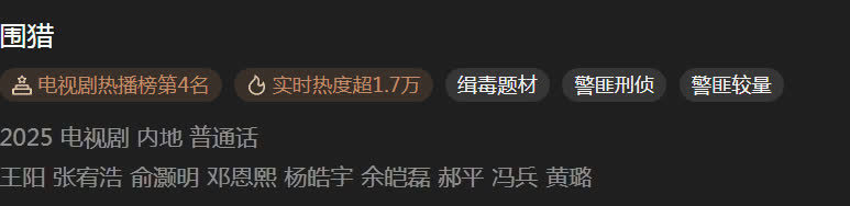 总的来说,《围猎》以“硬核缉毒题材+狼东谈主杀身份博弈”破圈,有望成为本年刑侦悬疑剧的爆款。