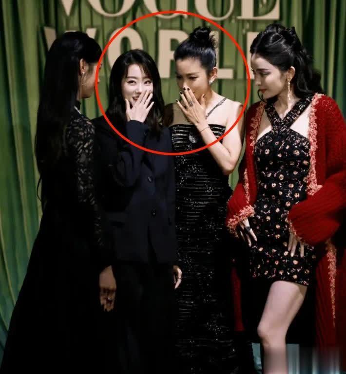 不光如斯,在一次过问作为的时刻,更是“看东谈主下菜碟”,她跟在贾玲和沈腾后头。
