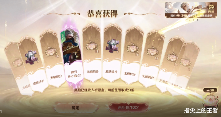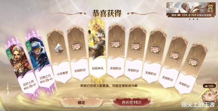 以往无双皮肤抽奖都会“埋个坑”,不外这个坑大宗来自玩家我方的不注重,那即是通常忘了领取阶段性奖励,也健忘理解了祈愿盒中的奖励,从而出现明明碎屑依然够了,还多来了一发后才情起来的窘态。