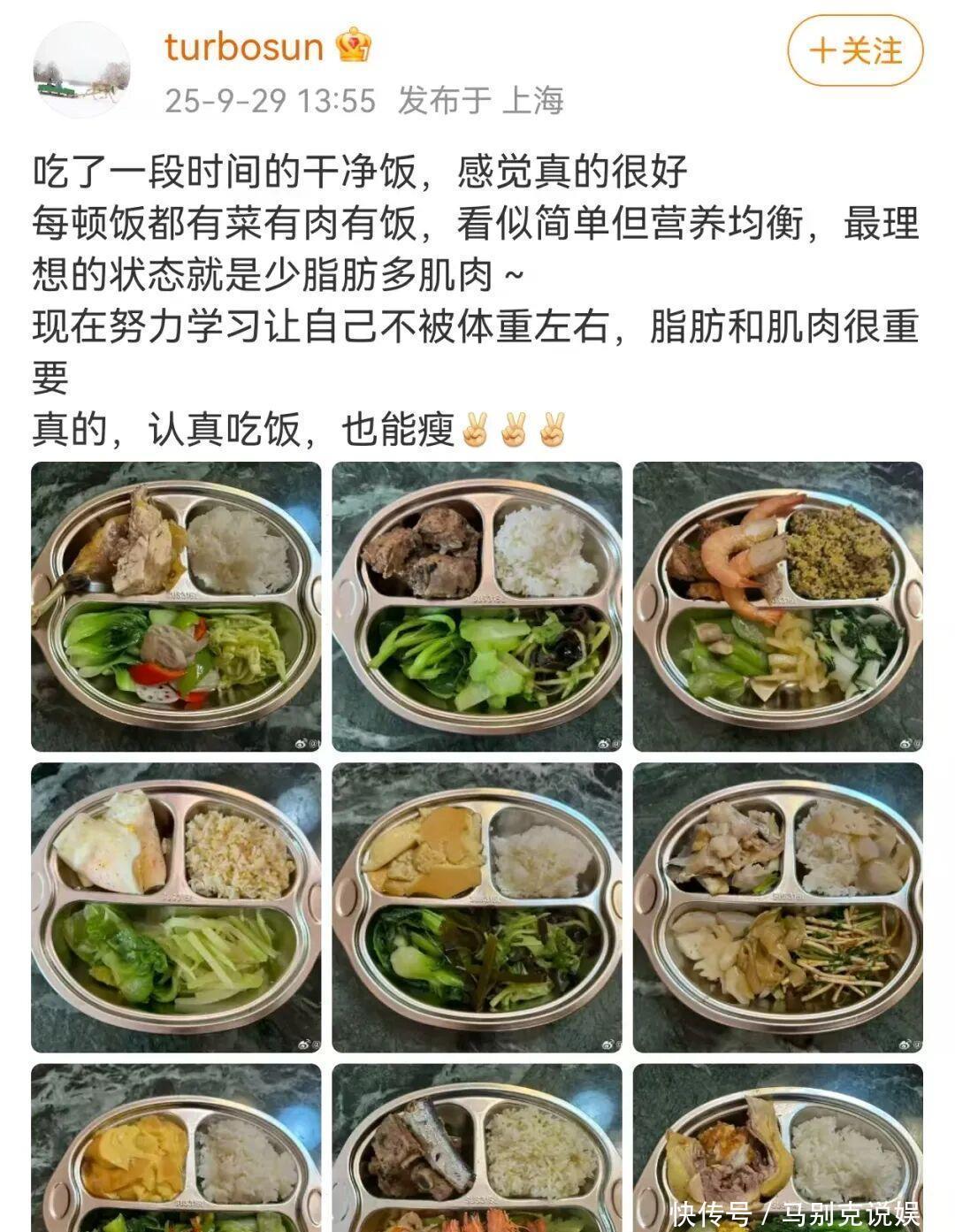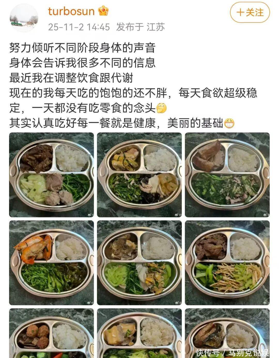孙俪曾经屡次在个东说念主支吾平台晒出我方吃的“干净饭”。