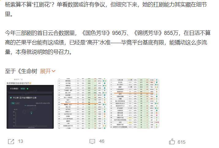 《生命树》和《太平年》正在播出,这两部剧齐是当之无愧的“大制作”,让各人没猜想的是,翻版《长夜银河》播出后,热度竟跳动《生命树》和《太平年》,这么的情况出现,网上竟传出一种声息,杨紫是不扛剧了吗?各人怎样看呢?